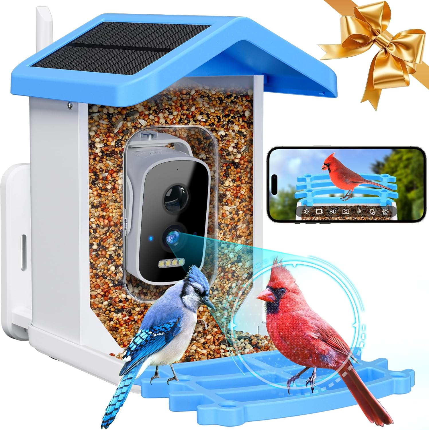 $54 Discount on Smart Bird Feeder with Camera Solar Powered, AI Identify Bird Species 2.5k HD Auto Capture Bird Feeder Camera, Real Time Views and Notifications, Gift for Bird Lovers